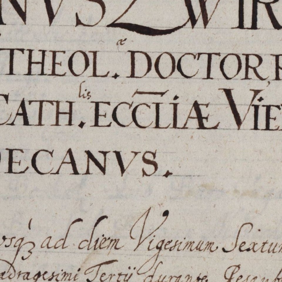 Rektorenblatt von Stephan Zwirschlag (Rektor 1642/43) Quelle Aus der Hauptmatrikel der Universität Wien (Kodex M 6, fol. 87) Bildgattung Dokument