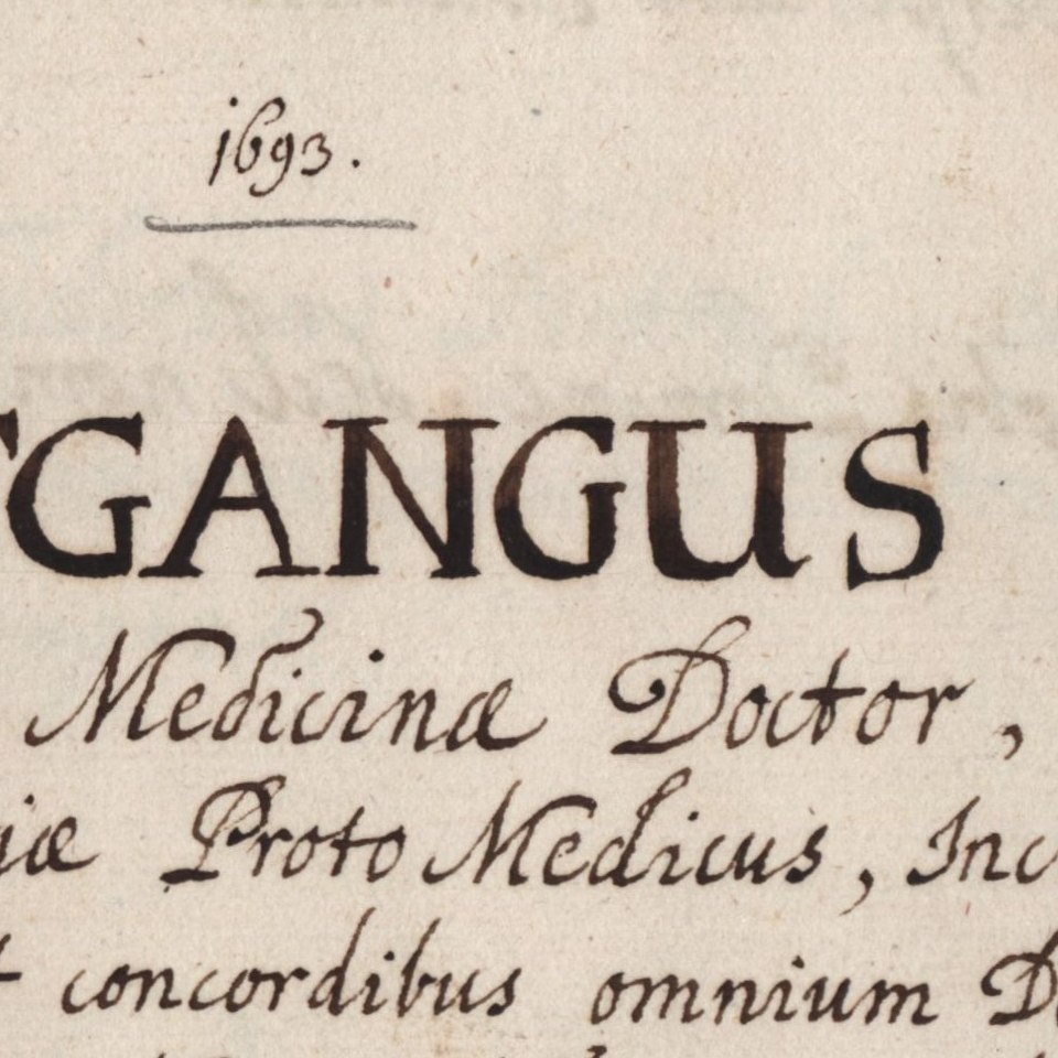 Rektorenblatt von Wolfgang Plöckner (Rektor 1692/93) Quelle Aus der Hauptmatrikel der Universität Wien (Kodex M 8, fol. 31) Bildgattung Dokument