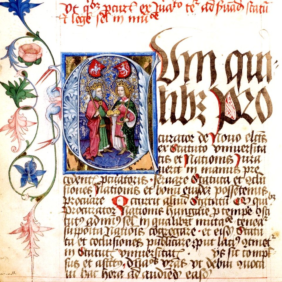Die Figuren in der Initiale zeigen den heiligen König Stephan von Ungarn und seinen Sohn, den heiligen Emmerich.