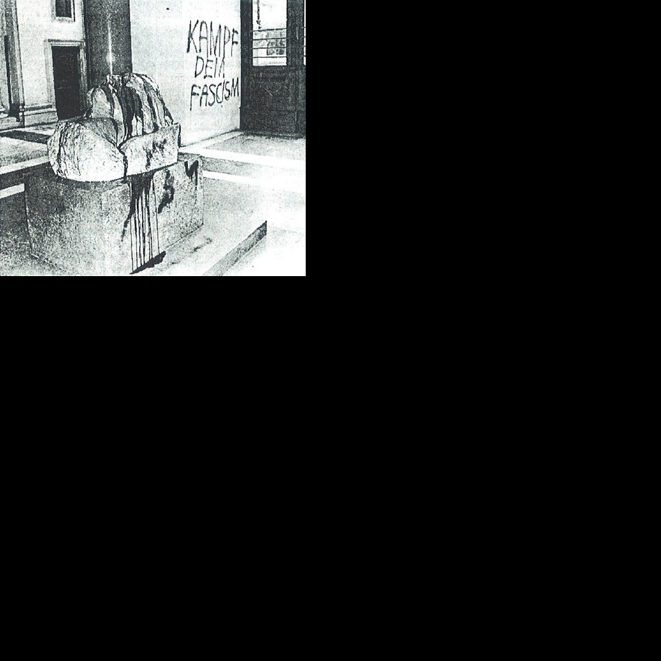 „Siegfriedskopf“ und Aula werden am 23. November 1990 mit Farbe beschmiert