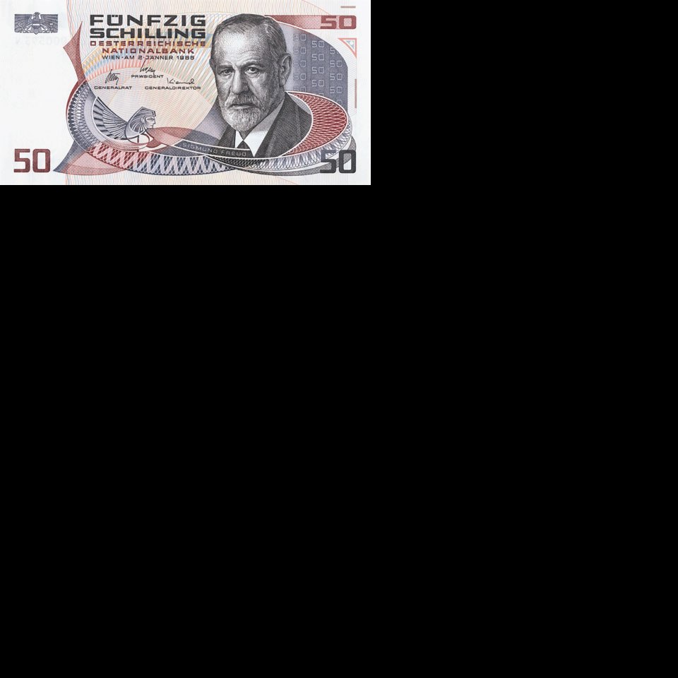 Sigmund Freud auf der Vorderseite der 50 Schilling-Note (1987)