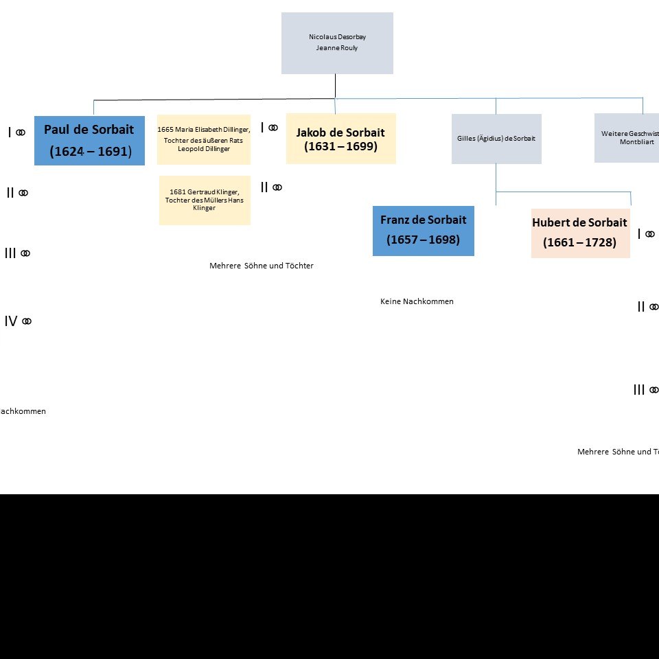 Der Stammbaum zeigt die in Wien ansässigen Familienmitglieder Paul de Sorbaits sowie deren Ehefrauen mit Nennung der Brautväter.