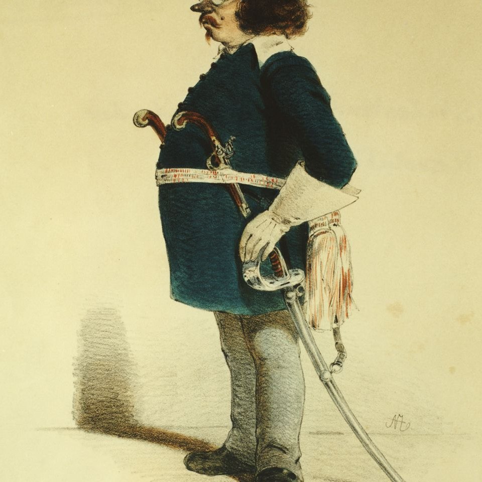 „Studentenvater“ in der Uniform eines Akademischen Legionärs Karikatur zum Opportunismus der Wiener Spießbürger Bildgattung Karikatur