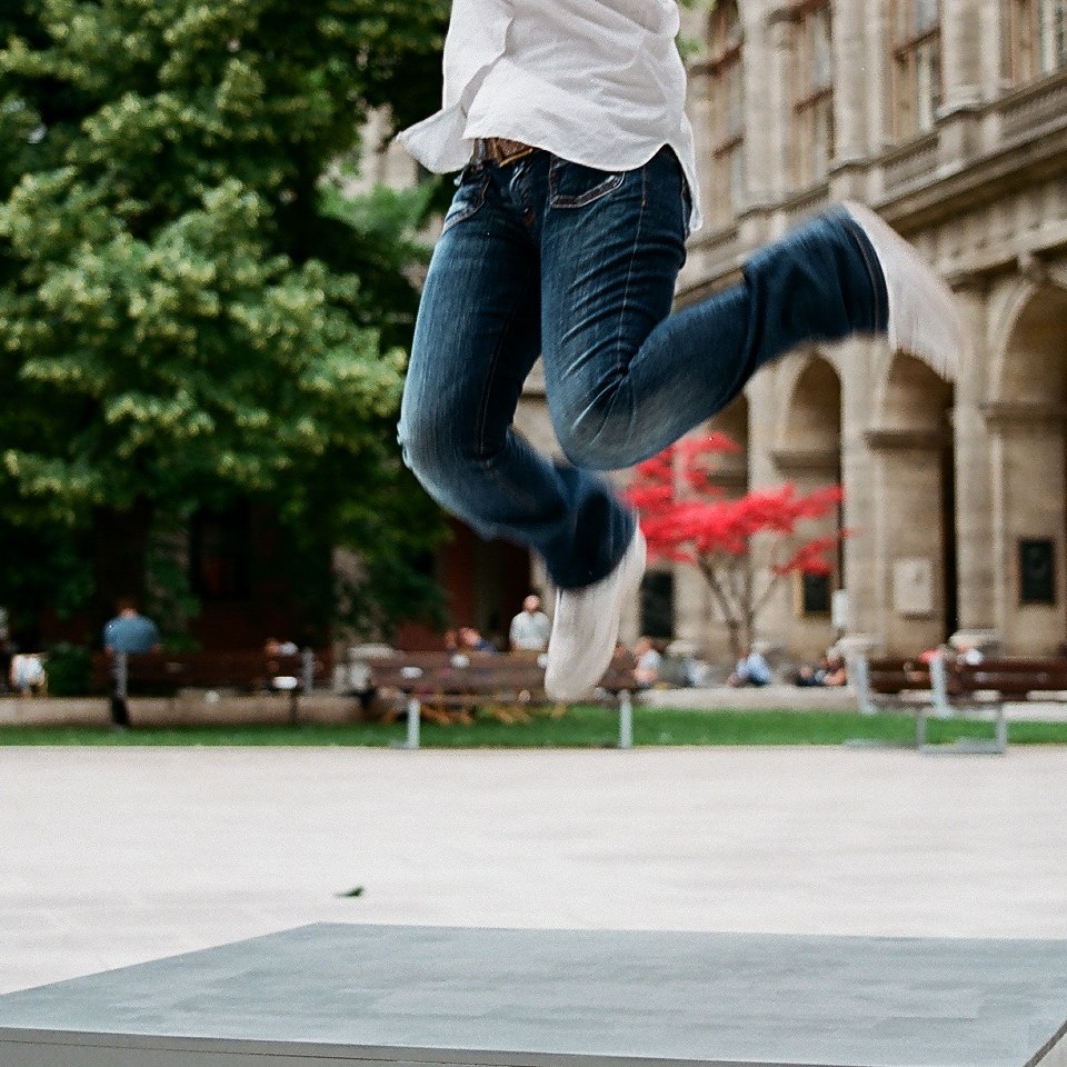 Studentin Hyunjin Lee als „lebendes Denkmal“, Fotoserie im Zuge des Kunstprojekts „Der Muse reichtʼs“ von Iris Andraschek im Arkadenhof der Universität Wien