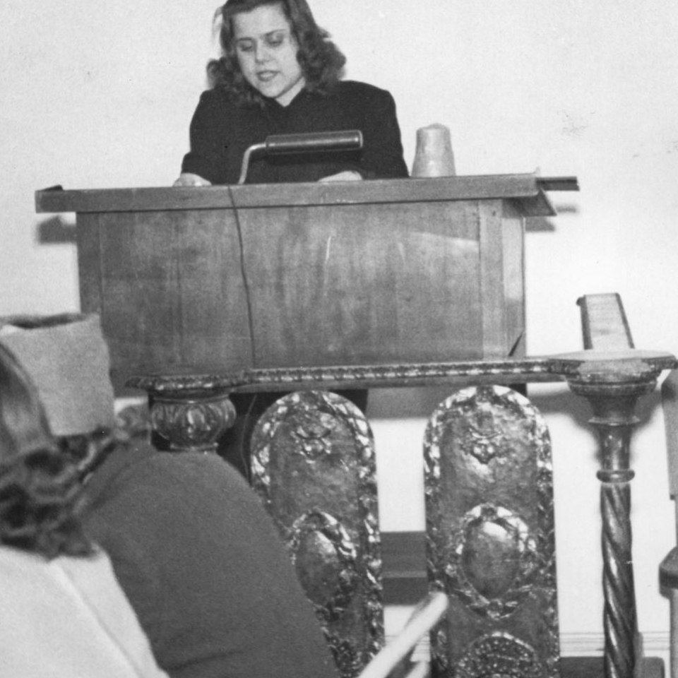 Pressefoto aus der Gründungszeit des Zentralinstituts für Theaterwissenschaft an der Universität Wien 1943/44. Originaler Untertitel: