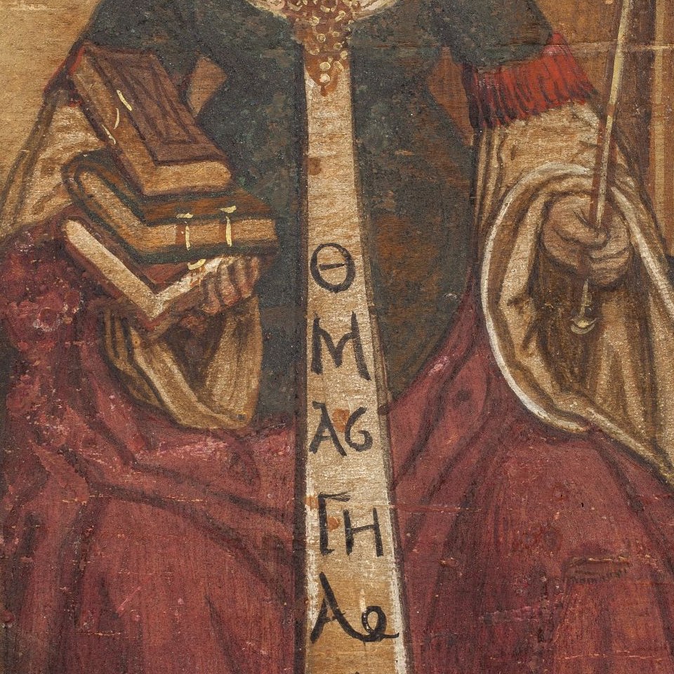 Die mit herrscherlichen Insignien ausgestattete Philosophia steht für das humanistische Ideal einer universalen philosophisch-rhetorischen Bildung. Das Bildmotiv ist entlehnt von einem Holzschnitt Albrecht Dürers aus den Quattuor libri amorum des Conrad Celtis (1502).