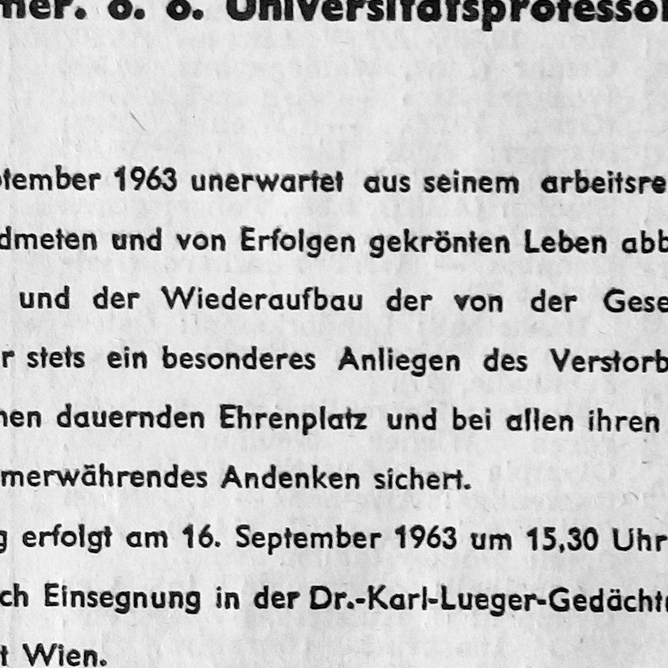 Todesanzeige Leopold Schönbauer Quelle Die Presse, 14./15. September 1963, S. 15 Bildgattung Dokument