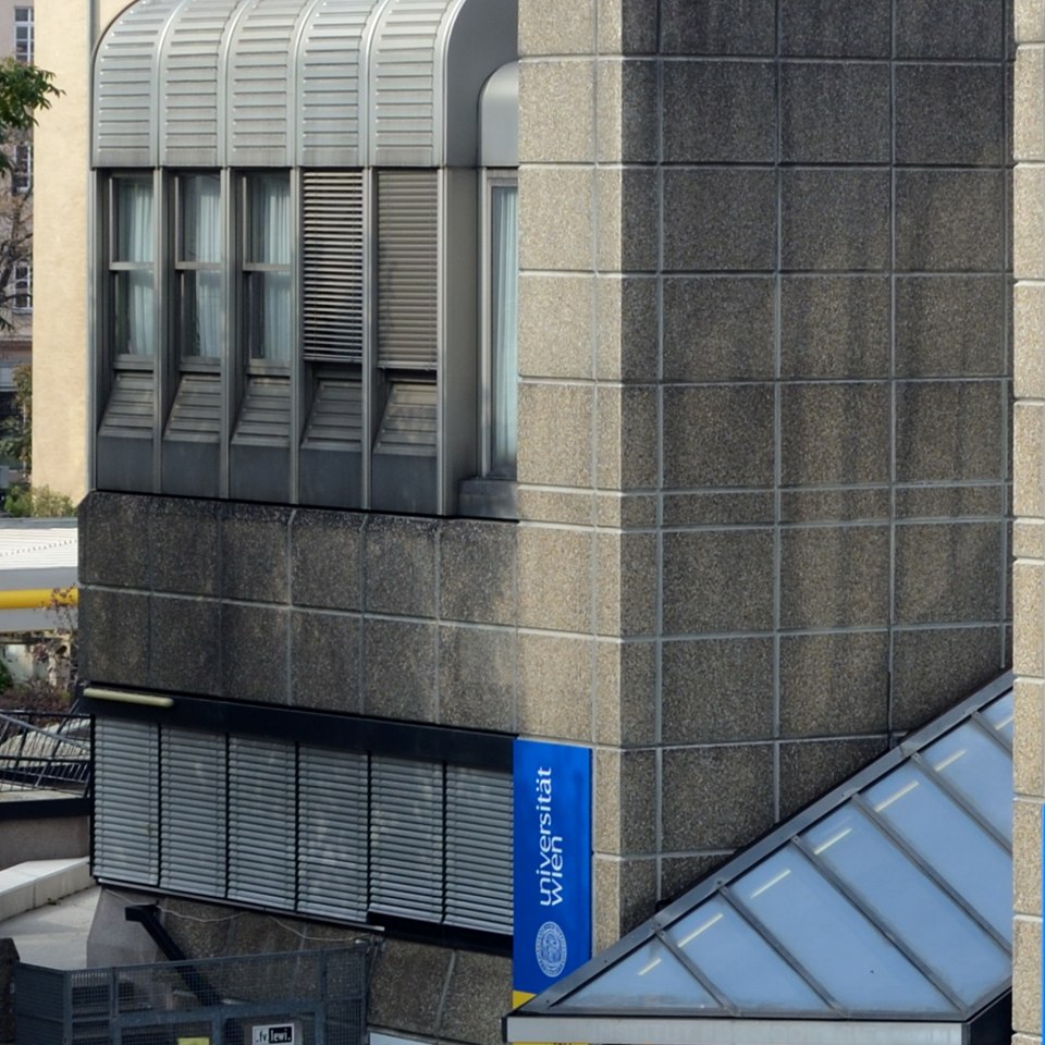 UZA I (Biozentrum), Eingang Althanstraße 14 Quelle https://upload.wikimedia.org/wikipedia/commons/1/10/UZA_Haus_1_Eingang…
