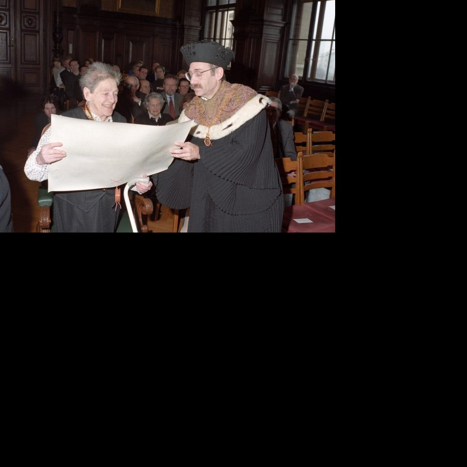 Verleihung des Ehrendoktorats der Universität Wien an Marie Jahoda durch Rektor Wolfgang Greisenegger Bildgattung Fotografie