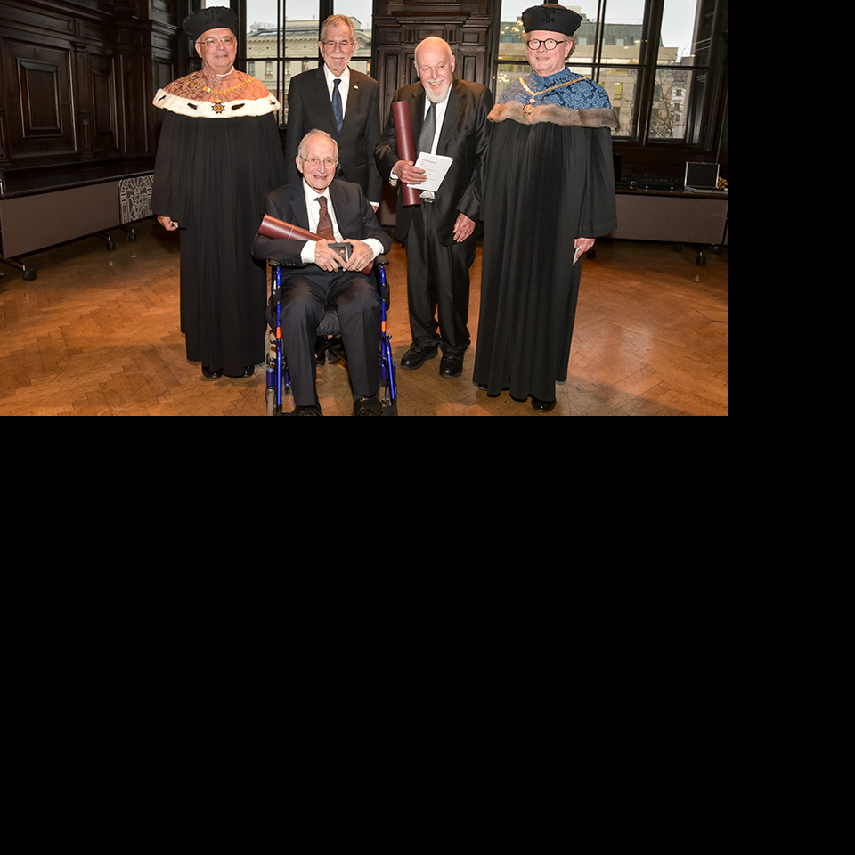 Verleihung des Ehrendoktorats der Universität Wien an Robert A. Shaw und Issac P. Witz, 2018 v.l.n.r.: Rektor Heinz Engl, Ehrendoktor Robert A. Shaw, Bundespräsident Alexander Van der Bellen, Ehrendoktor Issac P. Witz und Bernhard Keppler, Dekan der Fakultät für Chemie. Quelle http://medienportal.univie.ac.at/uniview/uniblicke/detailansicht/artike… Bildgattung Fotografie