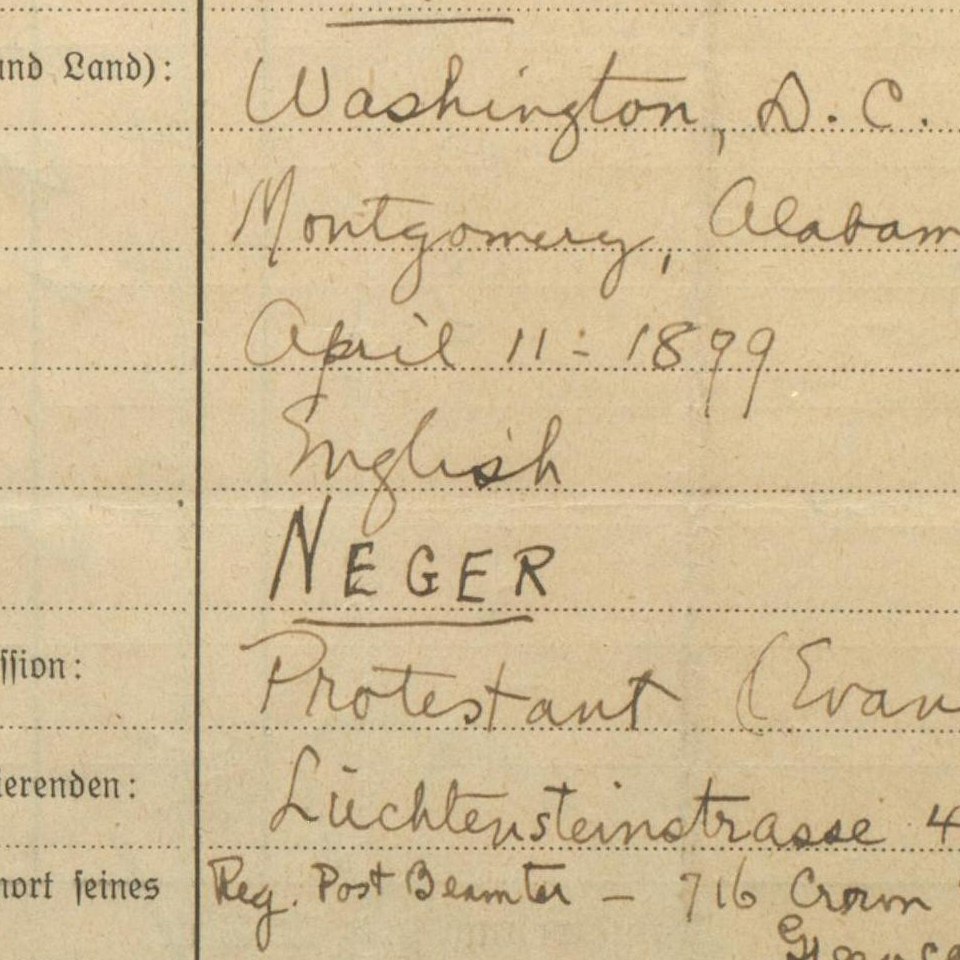 Der zu Beginn des Sommersemesters 1930 ausgefüllte Inskriptionsschein, damals genannt „Nationale“ von Percy Julian.