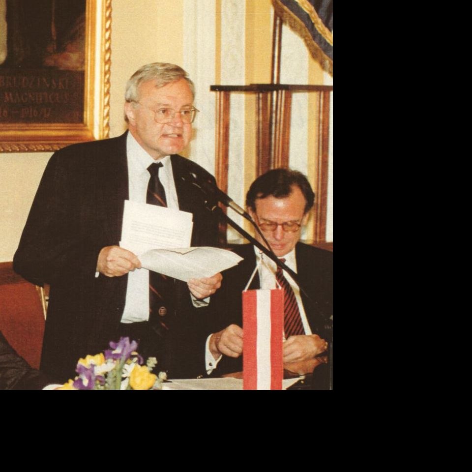 Universität Wien-Ausstellung in Warschau 1999, im Bild Wendelin Schmidt-Dengler und Georg Winckler