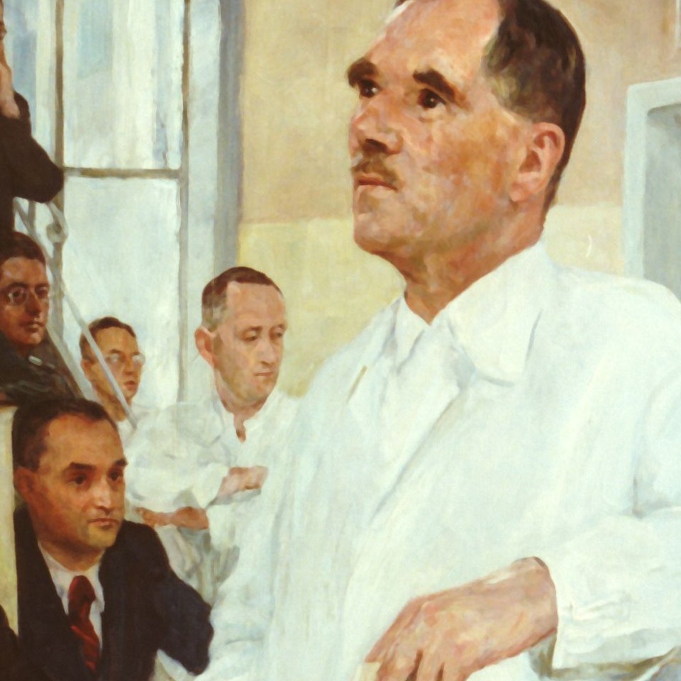 Text am Rahmen: "Wolfgang Denk -/ Vorstand der II. Chirurg.Klinik -/ von 1931-1954".