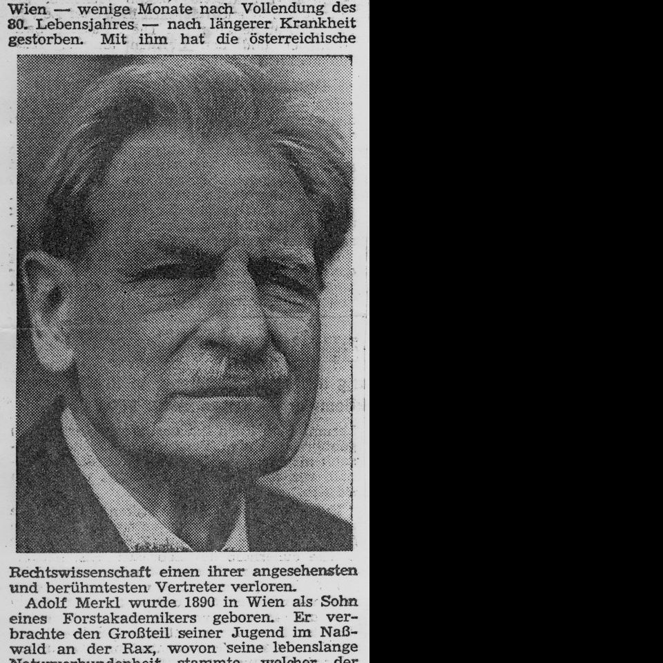 Zeitungsausschnitt: Todesmeldung von Adolf Merkl (1890–1970)