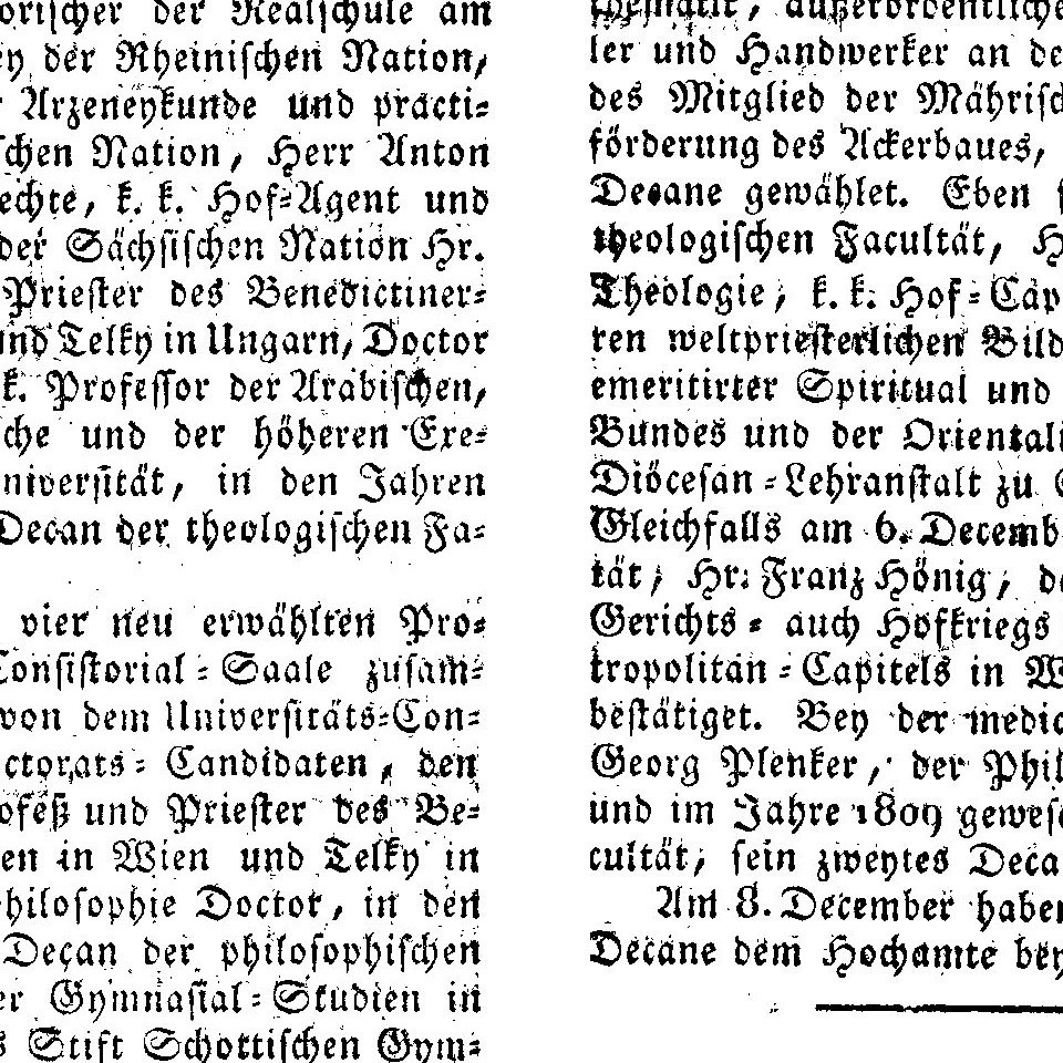 Zeitungsbericht zur Wahl des Rektors und anderer Funktionäre, Wiener Zeitung, 13. Dezember 1825