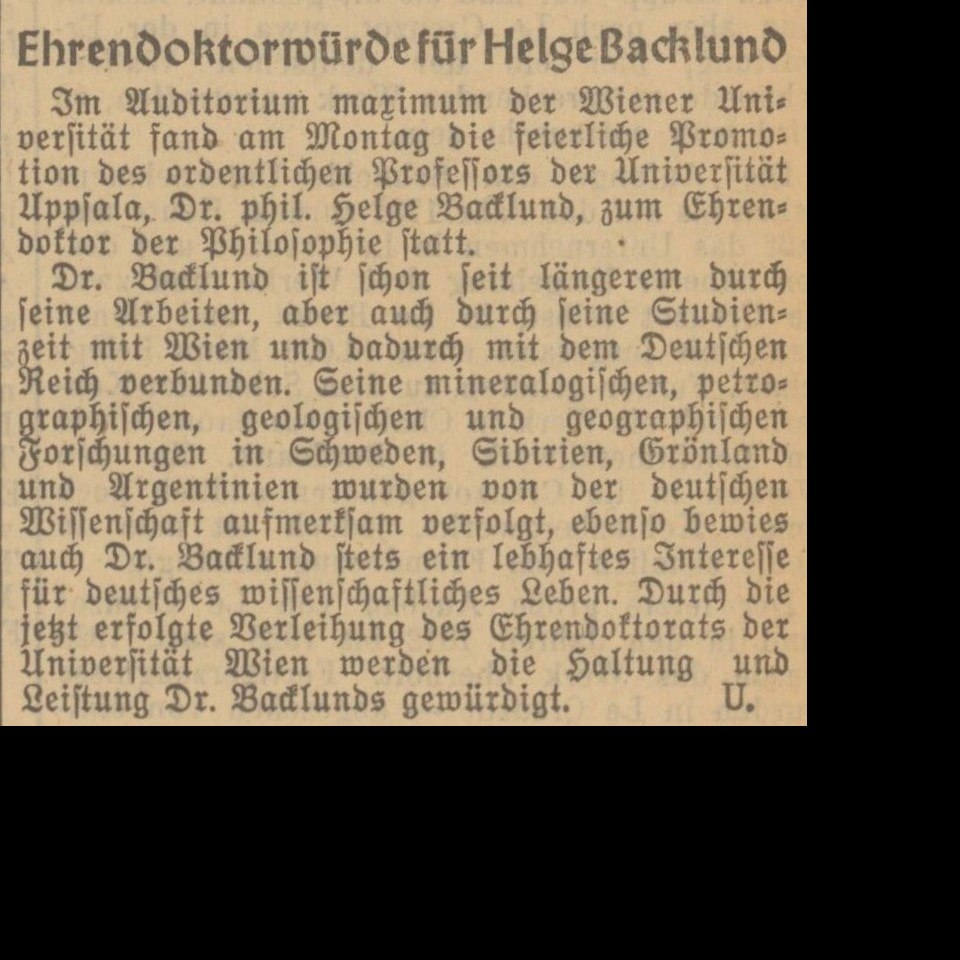 Zeitungsmeldung „Ehrendoktorwürde für Helge Backlund“, in: Völkischer Beobachter, 05.11.1940