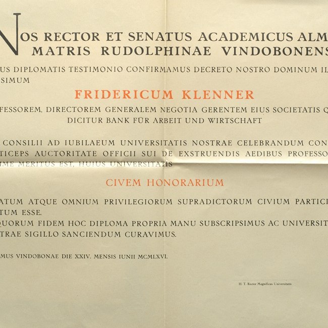 Ehrenbürger-Diplom Fritz Klenner 1966
