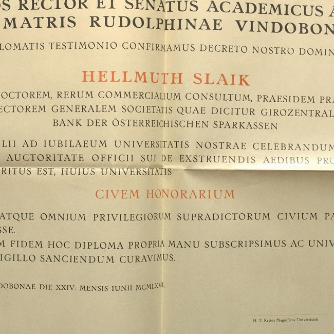 Ehrenbürger-Diplom von Hellmuth Slaik 1966