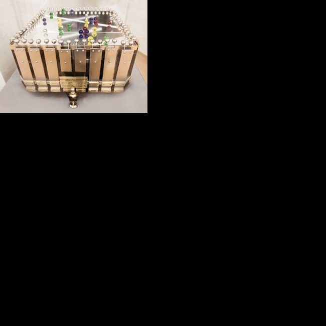 Als Geschenk für Boltzmann baute das Institut für Physik der Universität Graz ein Modell der statistischen Bewegung der Gasmoleküle. Hier ein moderner Nachbau des ursprünglichen Modells.