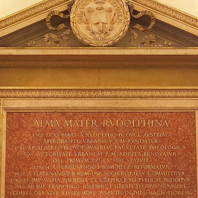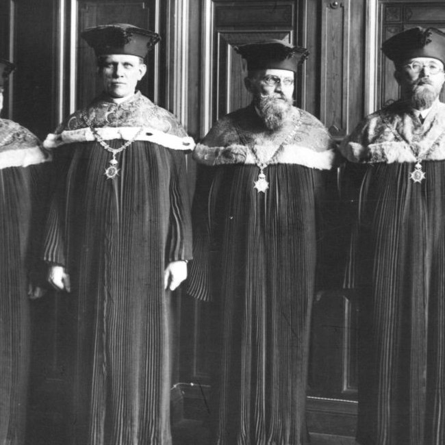 vlnr.: Dekan Leopold Arzt (Medizinische Fakultät), Dekan Leopold Krebs (Katholisch-Theologische Fakultät), Rektor Theodor Innitzer, Dekan Rudolf Köstler (Rechts- und Staatswissenschaftliche Fakultät), Dekan Oswald Menghin (Philosophische Fakultät), Oberpedell i.R. Anton Schima