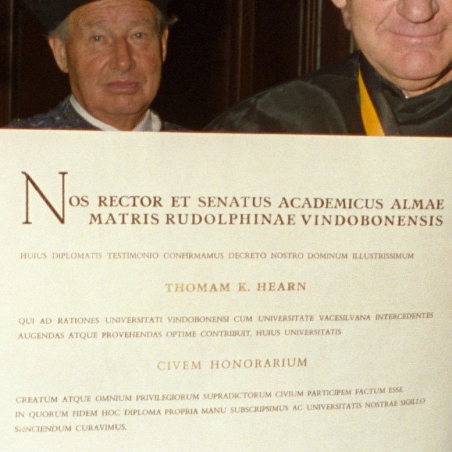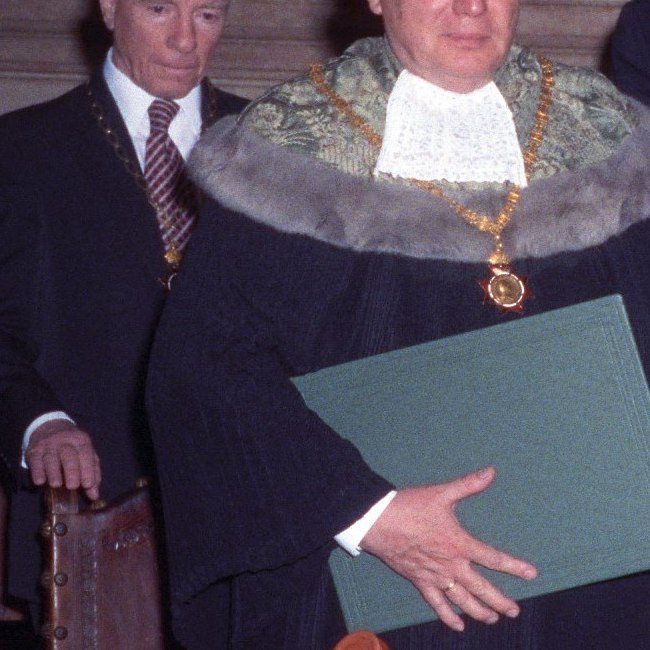 Johann Mayer bei der Ernennung zum Ehrenbürger der Universität Wien durch Rektor Wernhart