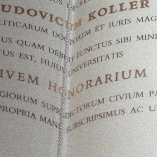 Ludwig Koller bei der Ernennung zum Ehrenbürger der Universität Wien durch Rektor Wernhart