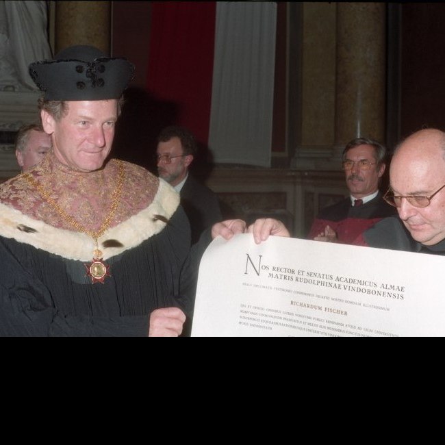 Richard Fischer bei der Verleihung der Ehrenbürgerschaft der Universität Wien durch Rektor Alfred Ebenbauer