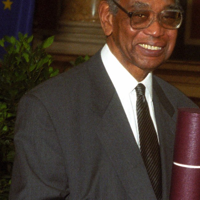 Philip Potter bei der Verleihung des Ehrendoktorats durch Dekan Gottfried Adam und Rektor Georg Winckler