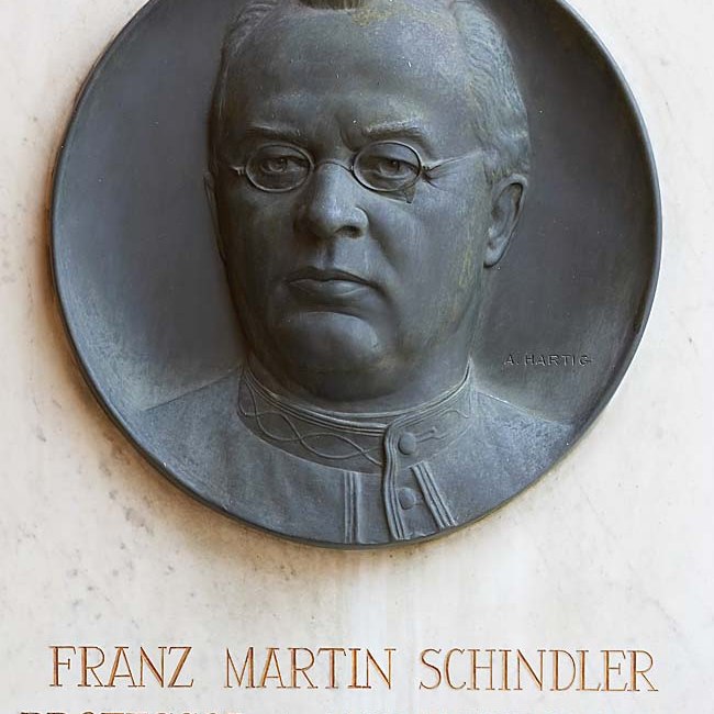 Denkmal im Arkadenhof der Universität Wien für den Theologen und Politiker Franz Martin Schindler (1847-1927) vom Bildhauer Arnold Hartig (1878-1972), enthüllt am 13. Juni 1951.