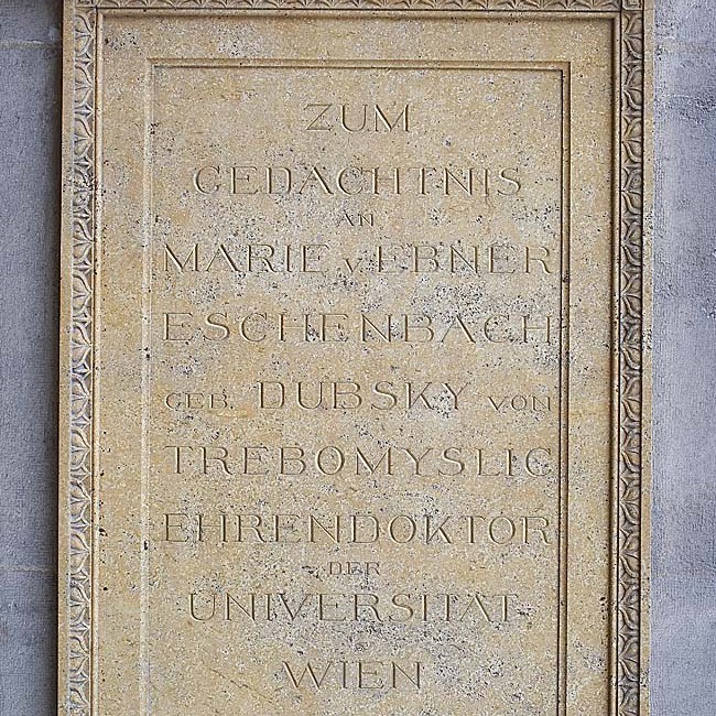 Die Dramatikerin und Schriftstellerin erhielt am 1. September 1900, drei Jahre nach der erstmaligen Zulassung von Frauen zum Studium an der Universität Wien als erste Frau auch das Ehrendoktorat der Universität Wien. Laudator war Jakob Minor. Zu ihren Ehren wurde 1925 eine Gedenktafel (Bildhauer: Robert Weigel) angebracht. Spätestens seit dem Erscheinen ihrer Romane Božena (1876) und Gemeindekind (1887) hatte sie einen gefestigten Ruf als sozialkritisch-humanistische Beobachterin der gesellschaftlichen Entwicklungen der ausgehenden Donaumonarchie.
