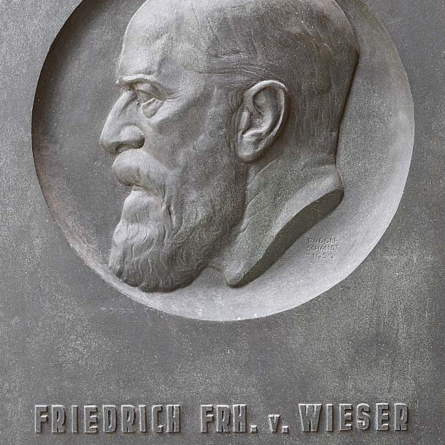 Denkmal für Friedrich von Wieser (1851–1926) im Arkadenhof der Universität Wien, gestaltet von Rudolf Schmidt, enthüllt 1957