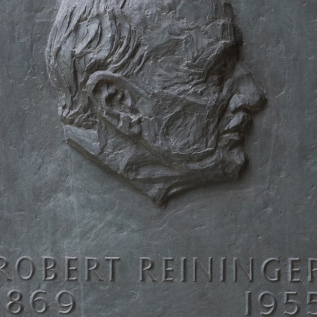Relief des Philosophen Prof. Robert Reininger (1869-1955) vom Bildhauer Günther Baszel (1902-1973) 1958 angefertigt, 1967 im Arkadenhof des Universitäts-Hauptgebäudes aufgestellt