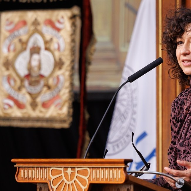 Eamnuelle Charpentier, Dankesrede nach der Ernennung zur Ehrendoktorin der Universität Wien am dies academicus 2025 im Großen Festsaal der Universität Wien.