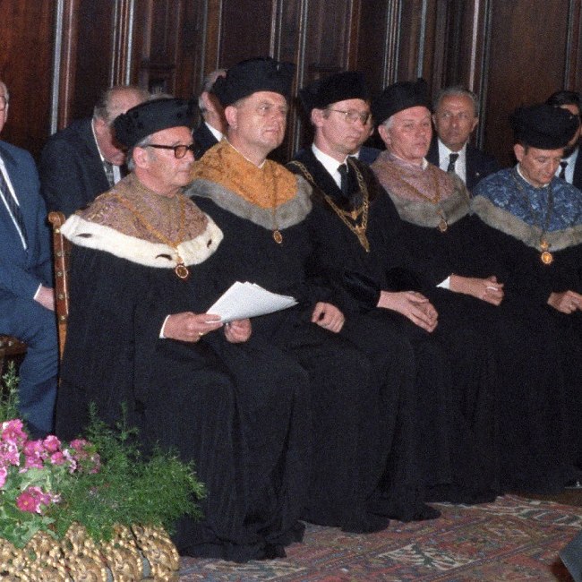 Festveranstaltung im Großen Festsaal der Universität Wien Dekan Giselher Guttmann und Rektor Franz Seitelberger bei der Collatio academica des Universitätsbundes Alma Mater Rudolphina, 1976