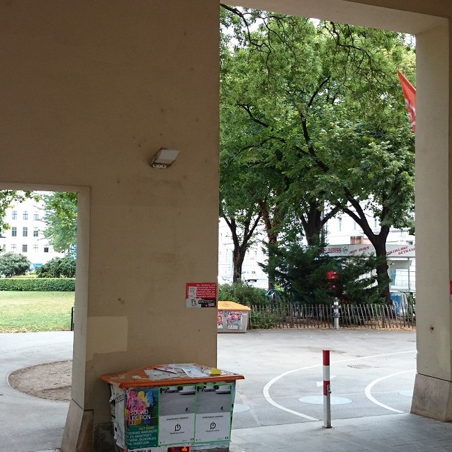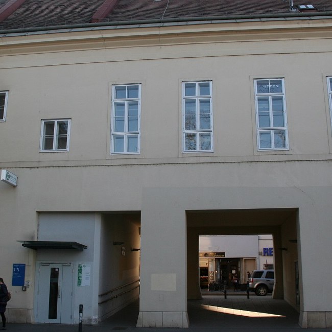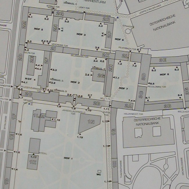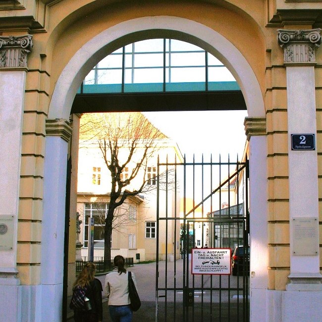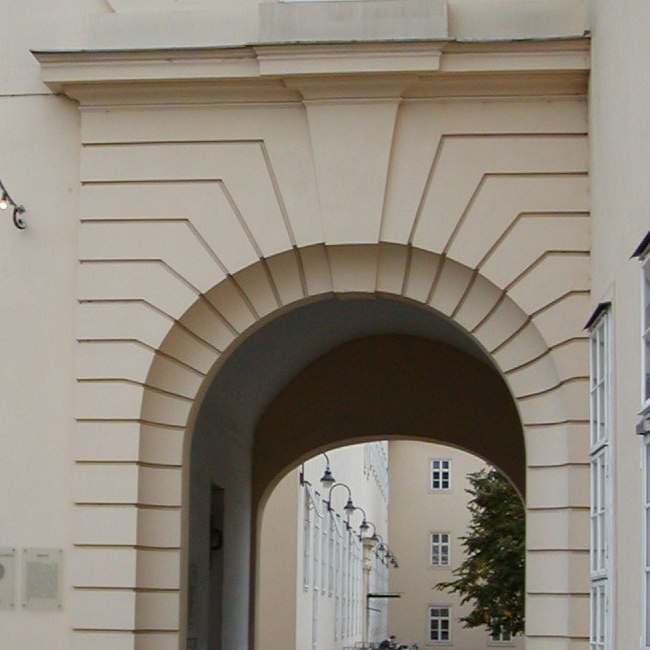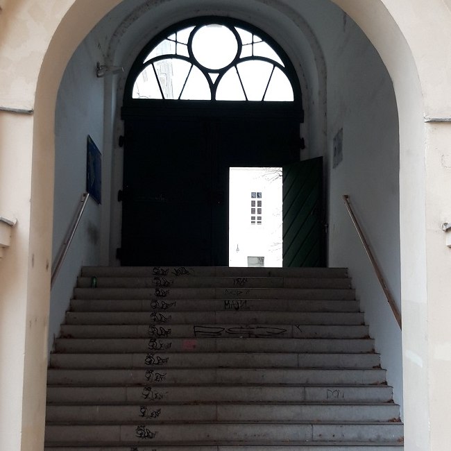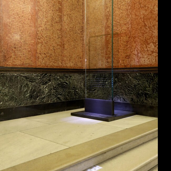 Rektorenfasten – ins licht gerückt. Künstlerische Intervention zu den Rektorentafeln der Universität Wien (Bele Marx & Gilles Mussard), 2017, Lichtsituation und Titel-Projektion auf den Stufen