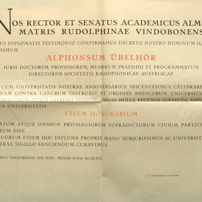 Alfons Übelhör, Ehrenbürger-Diplom 1966