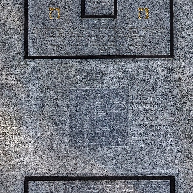 Der im Zuge des vom BMBWK finanziell unterstützen und von Schülern des GRG3 Hagenmüllergasse in Zusammenarbeit mit dem Bundesdenkmalamt durchgeführten Projektes „Vergessen – Wiederfinden“ im Juni 2005 restaurierte Grabstein Pineles-Herzig am Wiener Zentralfriedhof (Entwurf Kolo Moser um 1903).