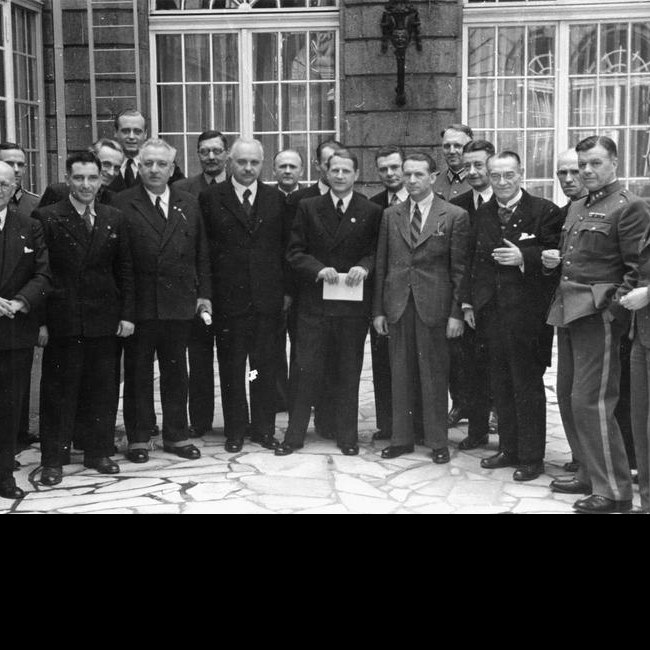 Von links nach rechts: 2. Dr François Naville (Schweiz), 4. Dr Vincenzo Palmieri (Italien), 6. Dr Helge Tramsen (Dänemark), 7. Dr Eduard Miloslavić (Miloslavic, Miloslavich) (Kroatien), 8. Dr František Hájek (Protektorat Böhmen und Mähren), 9. Dr Ferenc Orsós (Ungarn). 12. Gastgeber Dr Leonard Conti, (Deutschland, Reichsgesundheitsführer), 13. Dr Marko Markov (Bulgarien ), 14. Dr Alexandru Birkle (Rumänien), 15. Dr Gerhard Buhtz (Breslau), 17. Dr Reimond Speleers (Belgien), 19. Dr Arno Saxén (Finnland).