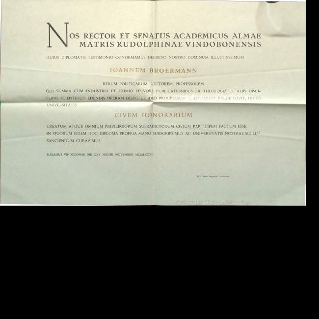 Ehrenbürgerdiplom Johannes Broermann, 1982