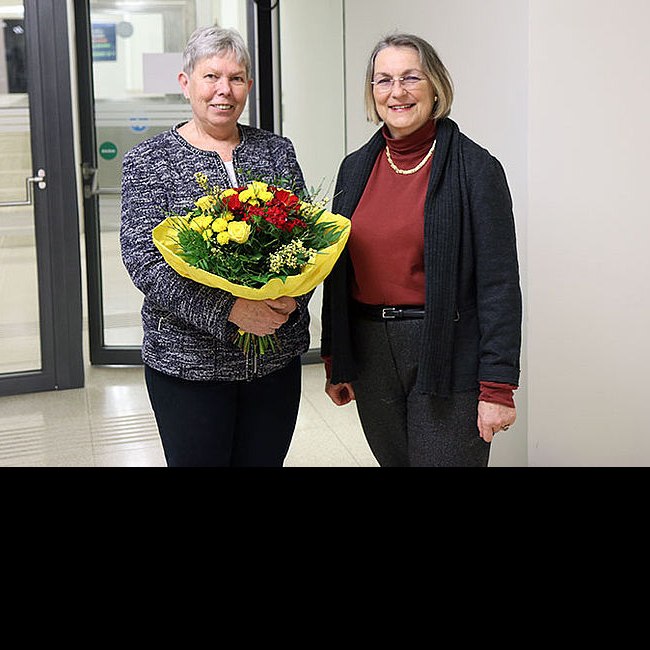 Ingrid Prunner mit Vizerektorin Regina Hitzenberger anlässlich des Gesundheitstages an der Universität Wien