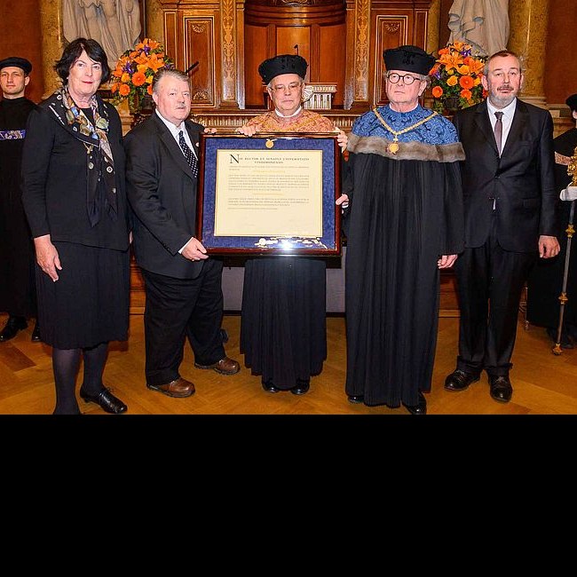 Im Bild v.l.n.r.: Eva Nowotny, Othmar Steinhauser, Heinz W. Engl, Bernhard Keppler, Michael Viktor Schwarz. Verleihung des Titels Ehrensenator an Othmar Steinhauser, Großer Festsaal der Universität Wien