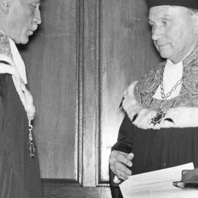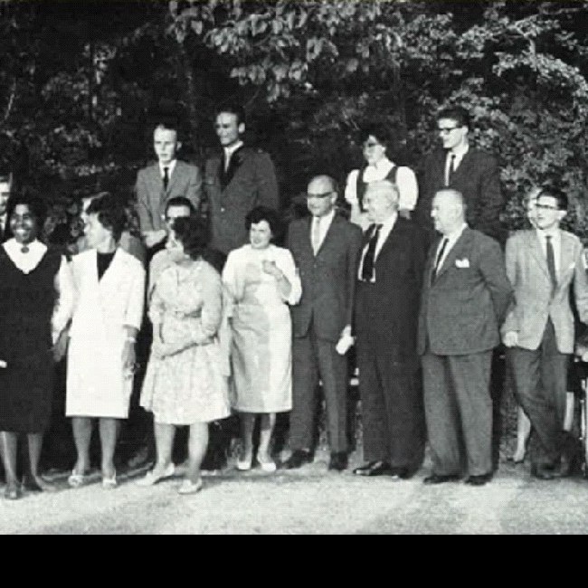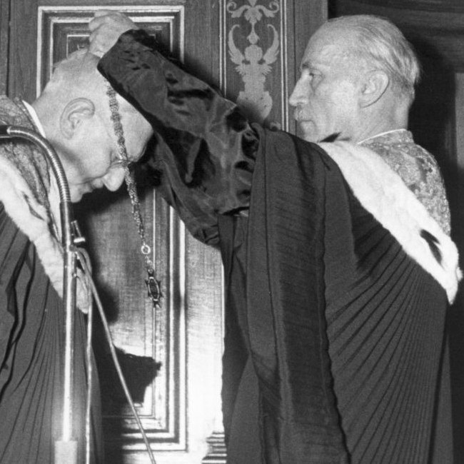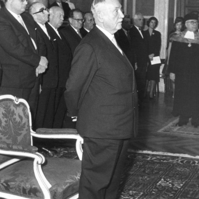 Unter den Festgästen Bundespräsident Adolf Schärf, dahinter Kardinal Franz König, die Minister Heinrich Drimmel, Karl Waldbrunner, Josef Afritsch und Christian Broda