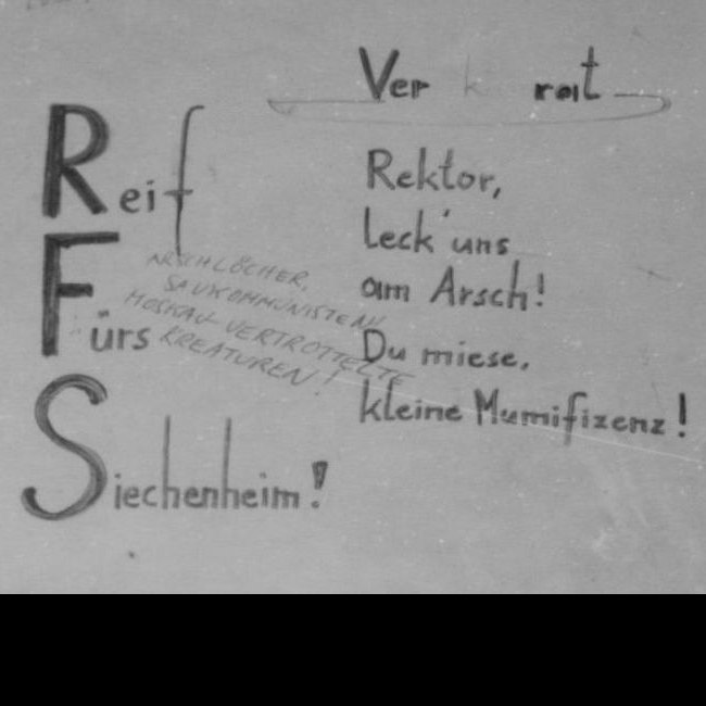 "Jirak for President!": Peter Jirak, Vorsitzender der vereinsrechtlich für die Aktion "Kunst und Revolution" verantwortlichen Sozialistischen Österreichischen Studierenden (SÖS), wurde als einziger Studierender offiziell von der Universität Wien relegiert.