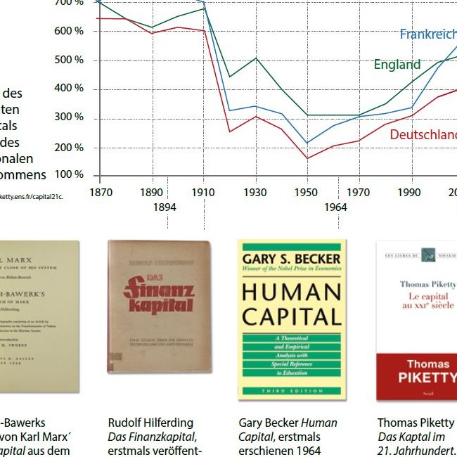 Böhm-Bawerks Kapital und Kapitalzins gehört zu den wichtigsten Theorien des Kapitals der letzten 150 Jahre, von Marx (1867) bis Piketty (2013). Diese Theorien behandeln oft sehr verschiedene Aspekte des „Kapitals“, von den Produktionsmitteln zur menschlichen Kompetenz (Becker) und der allgemeinen Vermögensverteilung (Piketty). Hier sind diese Theorien im Bezug zur Entwicklung des Kapitals in Europa von 1870 bis 2010 dargestellt.