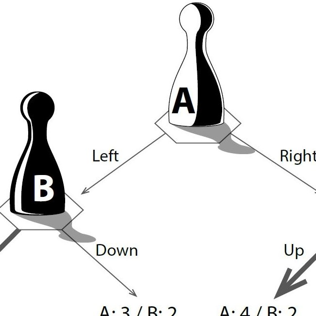 Die möglichen Züge in einem Spiel können durch einen Entscheidungsbaum dargestellt werden. In einem sequenziellen Spiel macht ein Spieler nach dem anderen einen Zug. Nach dem Zug von Spieler A hat Spieler B jeweils zwei Optionen. Wenn er rational handelt, wird er versuchen jeweils seinen Gewinn zu maximieren (fette Linie).