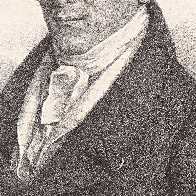 Das Hüftbild nach halbrechts zeigt im Oval den Mediziner Johann Peter Frank (1745–1821), in einer Zeichnung von Schröder, in Punktierstich gestochen von Pfeiffer (oh. Zeitangabe), der u.a. 1795-1801 Direktor des Allgemeinen Krankenhauses in Wien war