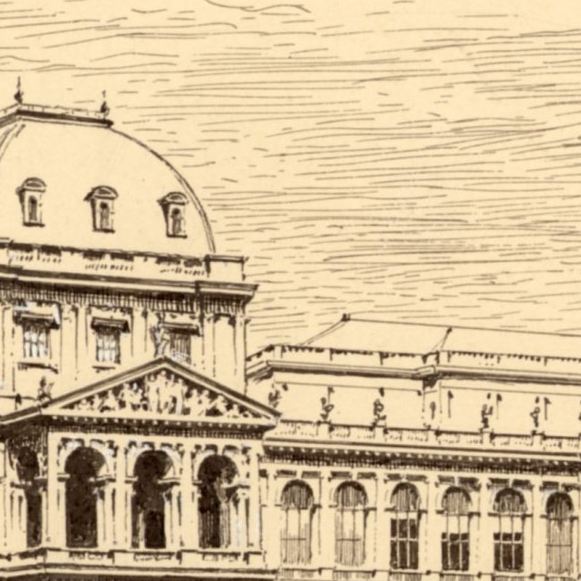 Das Hauptgebäude der Universität Wien gegen Ende des 19. Jahrhunderts (Federzeichnung von Georg Niemann).