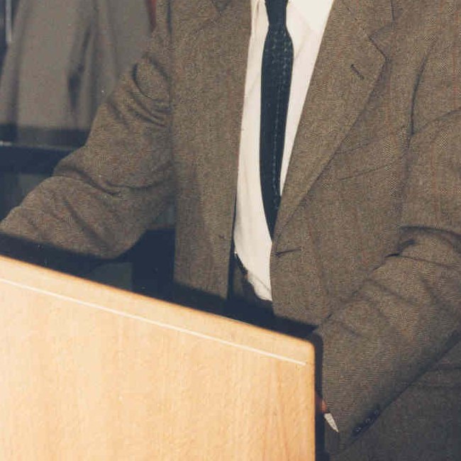 Der aus Österreich stammende Nobelpreisträger Max F. Perutz, nach dem die Max Perutz Labs Vienna benannt wurden, bei einem Besuch am Campus Vienna Biocenter (VBC) 1995.