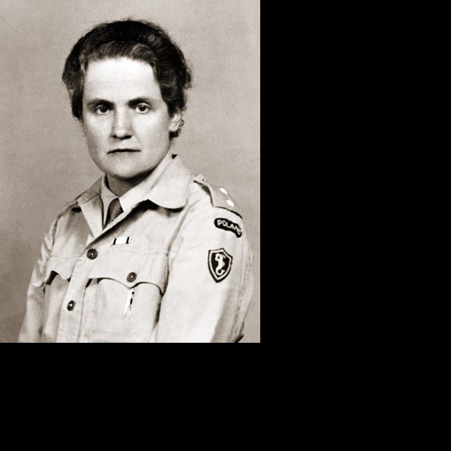 Karolina Lanckorońska (1898-2002), Kunsthistorikerin, polnische Adelige, Widerstandskämpferin, in der Uniform einer Offizierin des II. Corps der polnischen Armee, 1945 Karolina Lanckorońska
