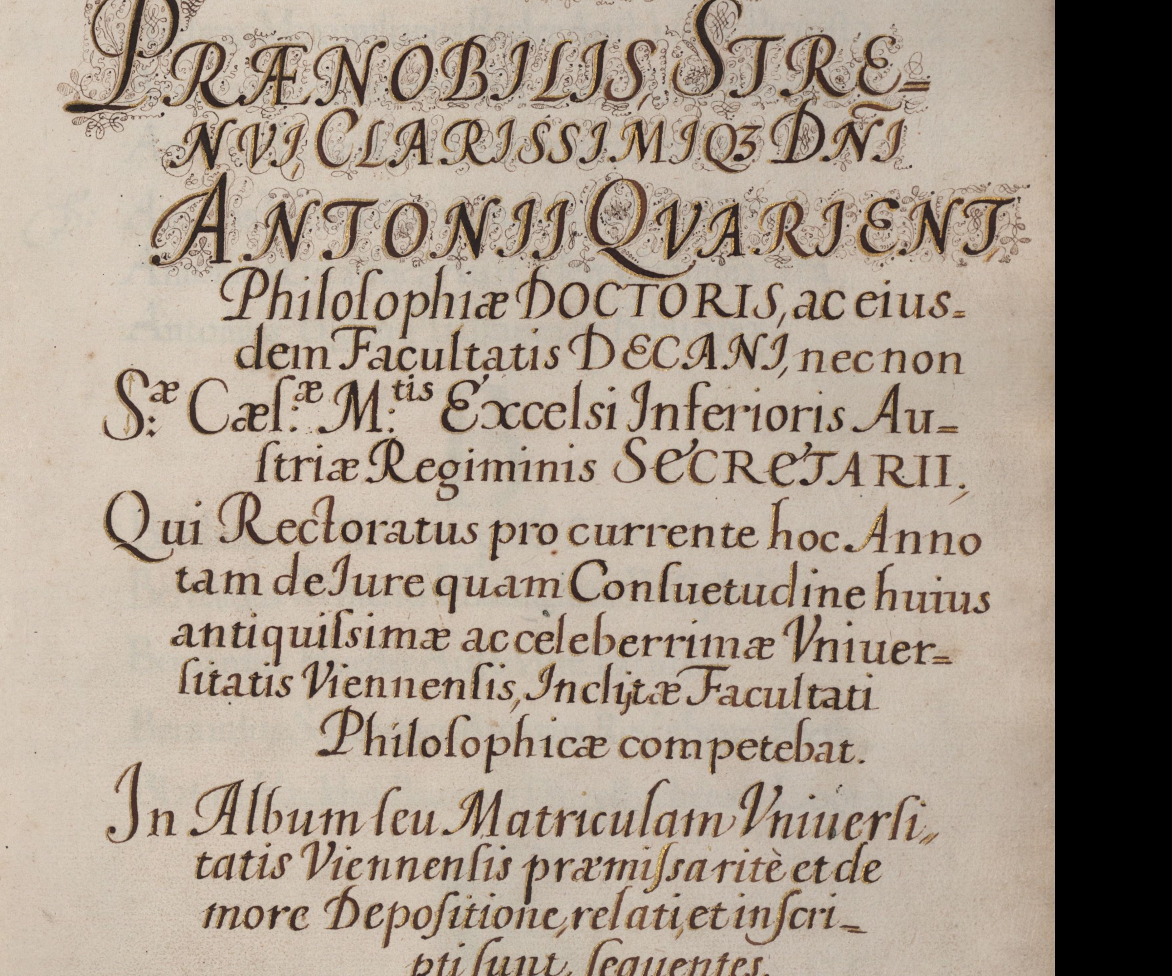 Quarient vertrat als Vizerektor ab 23. November 1661 den abwesenden Rektor Johann Wilhelm Mannagetta für die Dauer des Studienjahres 1661/62.